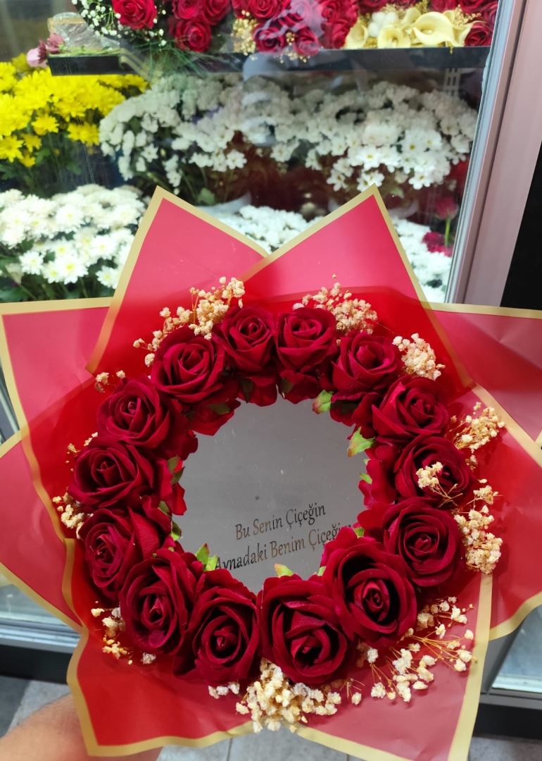 Ürün Yüksekliği: 40-50 cm Ürün İsmi: Aynalı Özel Tasarım Buket (Yapay Gül) Aynanın üzerinde ''Bu senin çiçeğin aynadaki benim çiçeğim'' yazmaktadır... Bazen sevdiklerinizi mutlu etmek ve kalplerini yeniden kazanmak için bir buket çiçek yeter. Eğer bu çiçekler, özenle seçilmiş kırmızı güllerden oluşuyorsa, hayatınızdaki en özel kişiye hediye edilmeye değer. Ayna ve Kırmızı Gül Buketi, sevdiklerinize hediye etmeniz için sizi bekliyor! En güzel dileklerinizi ve içten duygularınızı anlatabilir, sevdiklerinizin gününü bir anda güzelleştirebilirsiniz. Sevgililer Günü, Anneler Günü, doğum günü, yıl dönümü gibi özel günleri taçlandırmak ya da sıradan bir günü unutulmaz kılmak için tercih edebilirsiniz. Siparişiniz sonrasında çıkacak “Not oluşturma” sayfasında birkaç cümlelik not oluşturarak, hediyenizi daha anlamlı bir hale getirmeyi unutmayın! .Not: Çiçek aranjmanı içerisinde yer alan çiçekler stok durumuna göre farklı renklerde ve boyutlarda olabilir.